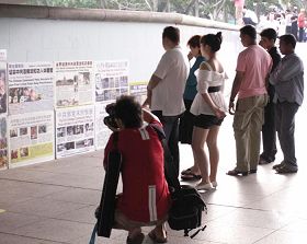 有位中年女士边接真相资料,边低声告诉学员,“我是‘610’的人(中共专门迫害法轮功的部门)。”她最后由衷的说:“炼法轮功的人都是好人!”并主动索要了《大纪元时报》。