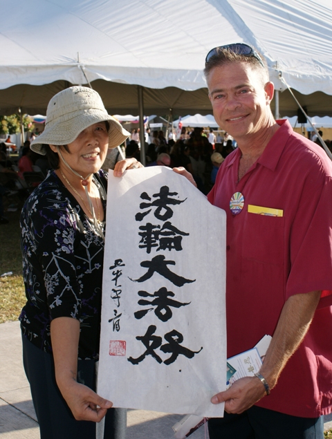 南佛州法轮大法协会的展位前游人络绎不绝,尤其是大法弟子舒缓优美的炼功动作让游人驻足,很多人都禁不住询问更多的法轮功(又称法轮大法)信息,也有相当多的人说他们知道一些法轮功的情况,在中共统治下被非法禁止。