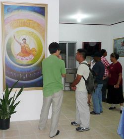 还有的参观者是学生,他们表示要告诉学校同学和老师。善良的孩子们在留言的签名中表示,迫害让人很伤心!有位喜欢艺术的在政府部门工作的翻译很认真看了画展后说,画得太好,太传神了。所有参观的人,法轮功学员都送给他们纸叠的莲花作为这次画展的纪念。