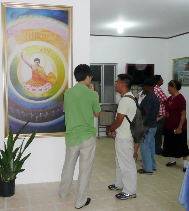 当晚前来的不同种族的人们对画作呈现的大法美好非常喜欢,感佩于画作的高水平,并觉得十分幸运能在这天涯海角看到如此优秀的画作。赏画的大多数人对于画作中表现的法轮大法在中国无辜遭到的严重迫害非常震惊和不解,表示想更多了解大法,向学员索要资料。
