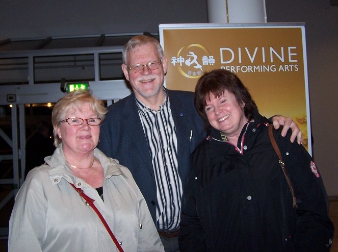![]() 瑞典拉克斯尔市的电脑网络部门总负责人查尔斯先生与妻子(右)和妻子的同事(左)在神韵演出现场林雪平音乐厅畅谈感受 |