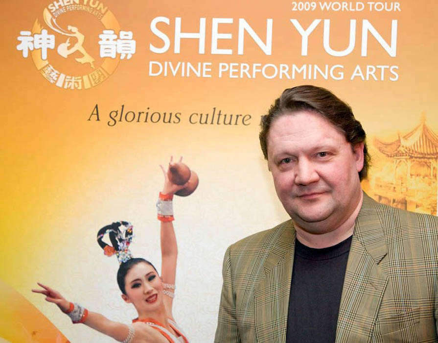 另一位来自俄国的著名男中音歌唱家亚历山大•莫戈雷维茨 (Alexander Mogilevets)在二十四日已经看过神韵,“我昨天就看了演出,真的非常喜欢。我特别喜欢那些服装。很多舞蹈我都喜欢,最喜欢的舞蹈是‘扇子舞’(《喜迎春》),真的好美。但是,作为一个音乐人,我最欣赏的是那些歌唱家,唱的好极了。他们的声音非常自然,受过非常好的训练,他们的身体也在一起唱。”