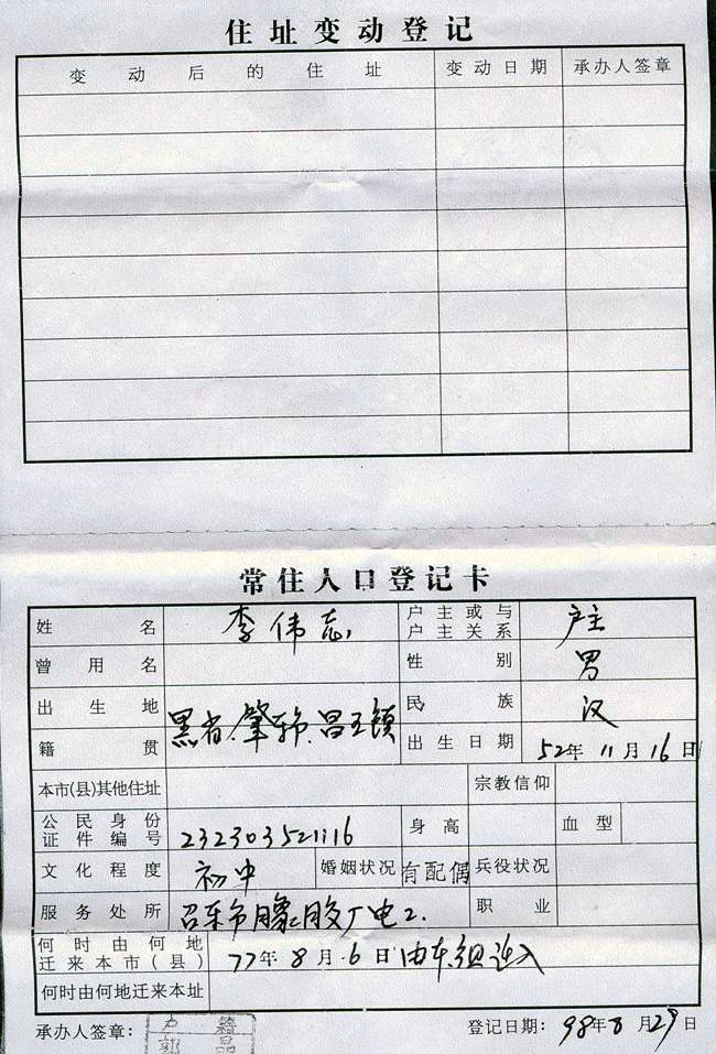 二零零零年十二月中旬,李伟志去北京想向政府讲述自己修炼法轮功受益的经历,失踪至今。家人在北京和当地登广告和贴寻人启事,也没找到李伟志。