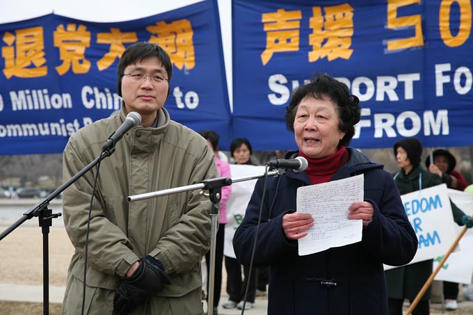 ![]() 2009年3月1日下午,美国首都华盛顿及周边地区的民众在国会山集会,声援五千万中国人退出中共党(团、队)。 |