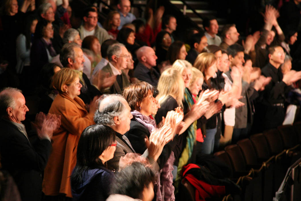 ![]() 二零零九年三月七日晚十点,美国神韵纽约艺术团在新伦敦剧院的最后一场演出,平时矜持的英国人纷纷起身热烈鼓掌。 |