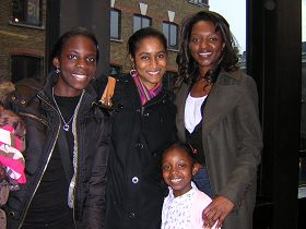 ![]() 律师海蒂.伊布鲁(Heidi Ibru,左二)和好友房地产代理商海迪萨•乌玛女士(Heidisa Umar),以及乌玛女士的女儿和妹妹,一行四人一同观赏了神韵纽约艺术团在伦敦的演出。 |