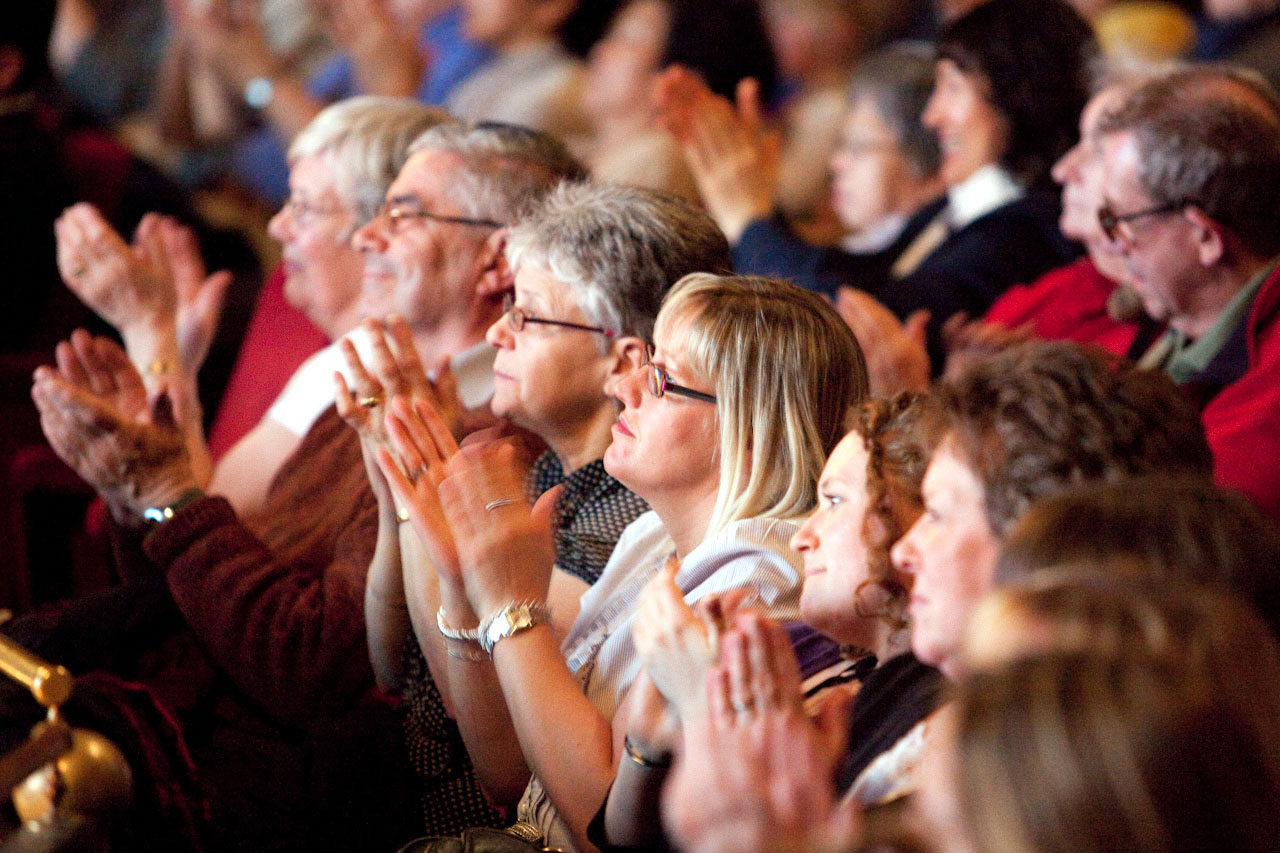 【明慧网二零零九年四月十日】(明慧记者雪瑞爱丁堡综合报导)二零零九年四月八日晚,神韵纽约艺术团在英国爱丁堡Playhouse剧院的演出在观众的热烈掌声中圆满落幕。演出中,每一个节目结束时,观众们都以热烈的掌声表达心中的喜爱,更不时有观众情不自禁地大声叫好。演出结束时,神韵艺术家们三次谢幕,许多观众仍不舍得离去,许多观众表示明年一定要再来观看神韵演出。