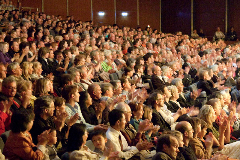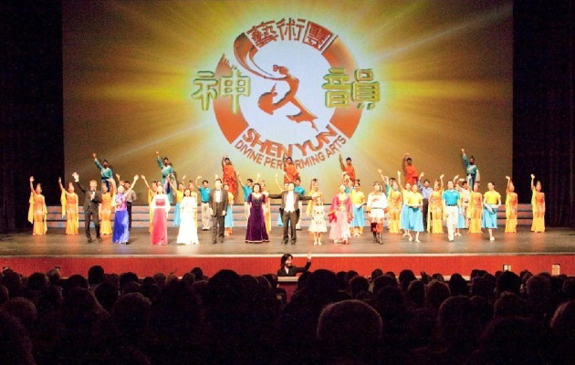 神韵纽约艺术团在德国东部重镇德累斯顿市文化宫的演出结束后艺术家们再次登台谢幕