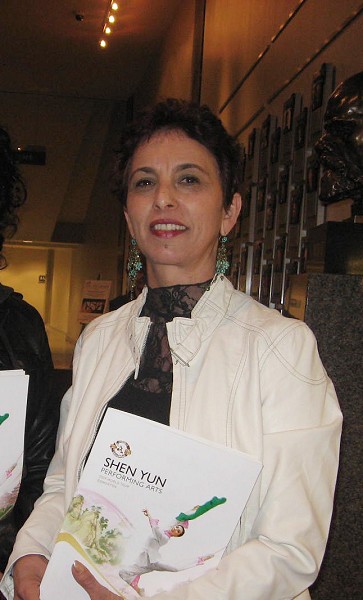 水墨画画家简妮丝•米圭尔女士于十六日晚观看了演出后表示,神韵晚会最为美丽的地方是,横贯历史,从古至今,不但展现了远古的传奇,还讲述了现今发生的故事。她惊叹于神韵的艺术美感。