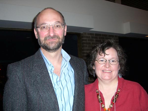 里贾纳大学戏剧系从事戏剧教学、戏剧服装设计等工作的凯西•密恩斯(Cathy Mearns,右)女士赞叹神韵的服装制作精细。