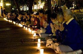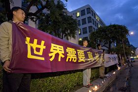 ![]() 洛杉矶的法轮功学员和支持者在中领馆前,举办纪念“四·二五”十周年烛光集会。 |