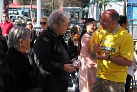 活动过程中,很多路人站在展板前认真的阅读,不停的询问。法轮功修炼者所体现的和平、理性的风范,给世人留下了深深的印象。