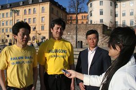 最后他还表示,他一直用抵制购买来自中国劳工产品的方式,抗议中共对法轮功的迫害。他觉得中共很卑鄙。他还希望欧洲其它国家都来关注这件事情,赶快停止这场迫害!当学员送给他一个“紧急救援中国受迫害法轮功学员”的纪念章时,他很庄重的戴在自己的身上,然后加入炼功的行列中去。最后他还同法轮功学员一起来到斯德哥尔摩的市政厅前,参加纪念“四•二五”和平上访十周年的炼功活动,参加了完整的活动后才满意的离开。