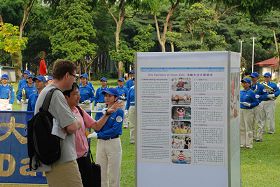 从地铁站出来的外国游客,一来到集会现场就拍照,看展板,很关心的询问,索要资料……买菜路过的江苏客工感慨,看了好几年的《大纪元时报》,我们知道炼法轮功的人好。