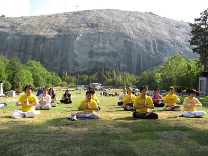 ![]() 亚特兰大法轮功学员在石头山前集体炼功 |