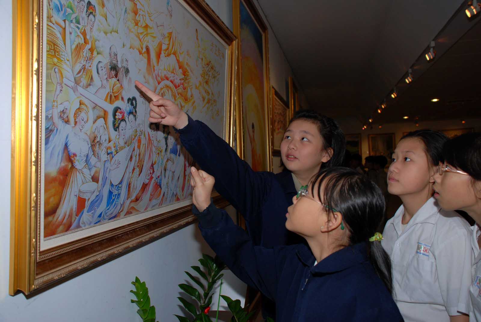 他接着说,“真善忍国际美展”主要以油画为主,学生在学校比较少接触到油画创作素材,这是一个认识油画很好的机会。此外,这是一个主题性的画展,传达法轮功学员对信仰坚忍不屈的道德意涵,可以让学生学会尊重别人信仰,认识到善恶有报。
