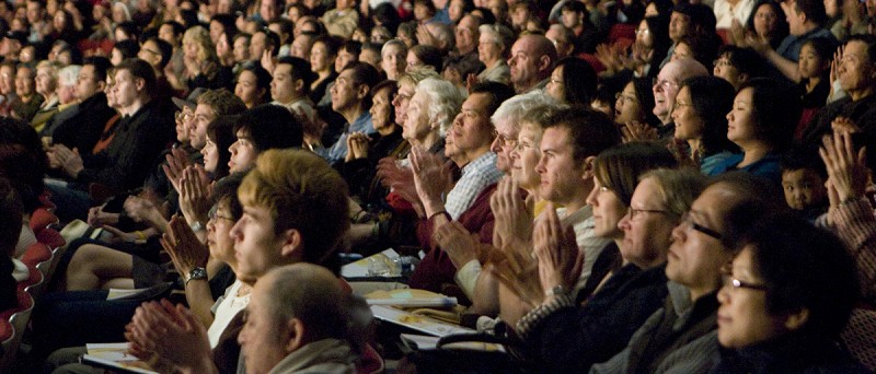 ![]() 二零零九年四月五日,温哥华女皇剧院中观众专注的欣赏神韵演出 |