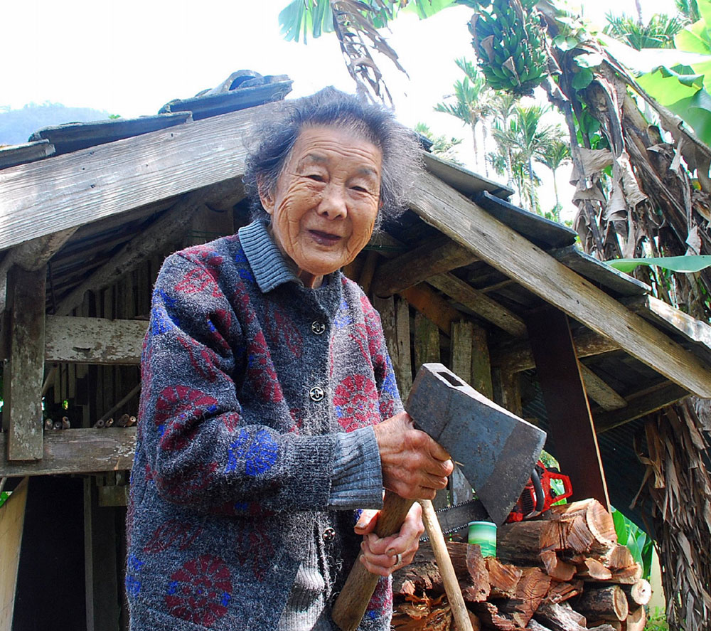 九十一岁的阿嬷还做家事,拿斧头劈柴,神清气爽