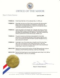 决定:市议会将记录并宣布二零零九年的五月十日到五月十六日为剑桥市的“法轮大法周”。