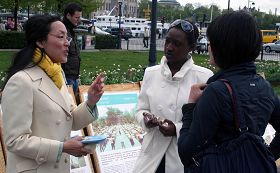 西人法轮功学员Cecilia说,我很明显地感到现在世人的变化很大,很多人都愿意来听真相,对法轮功感兴趣的人现在是越来越多了。而且有很多人不但对法轮功富有同情心,而且还主动要帮助法轮功学员做一些事情,为早日制止这场持续已经十年的迫害作出努力。刚刚和我交谈的那二位女士中,就有一位是学新闻写作的记者。她明白了真相后,收下了所有的有关法轮功的真相材料,表示回去后要写一篇文章,发到瑞典的报社。她认为这件事就是应该让更多的人知道,大家都来关注并共同来制止迫害。她的另一位同伴表示回去后要给瑞典的首相写信。