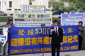海外中国民主联盟及中国学生学者独立同盟的黄慈平也为本次活动发来声明,声明中说:“五千四百万民众把解体中共又向前迈了一步。这不仅仅是他们个人的道德升华和解放,而是对整个中国的巨大贡献,感谢五年前的大纪元社论《九评共产党》,揭开了千万民众退出中共的序幕。”