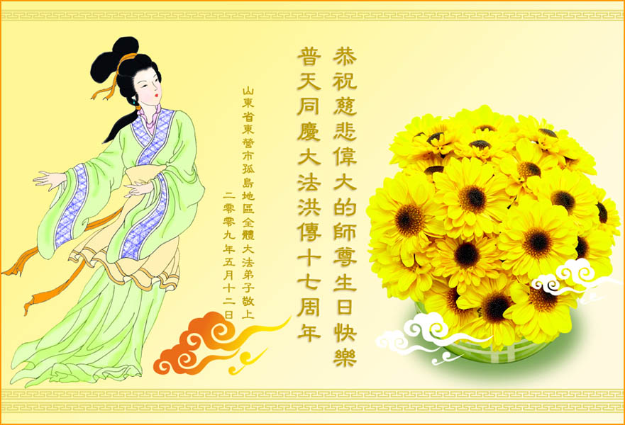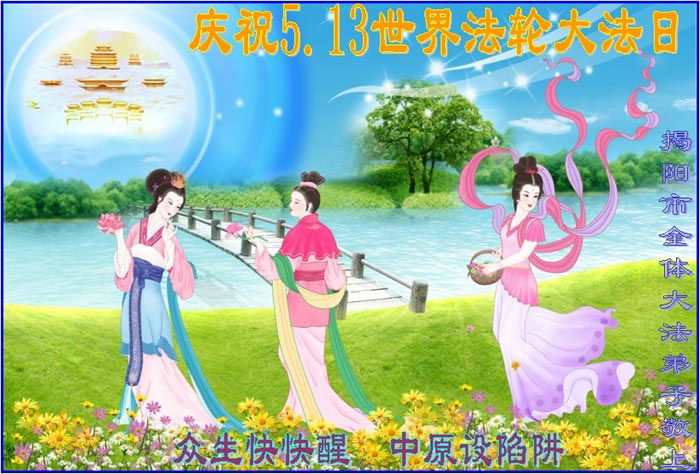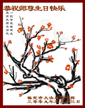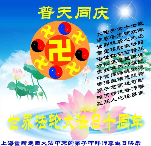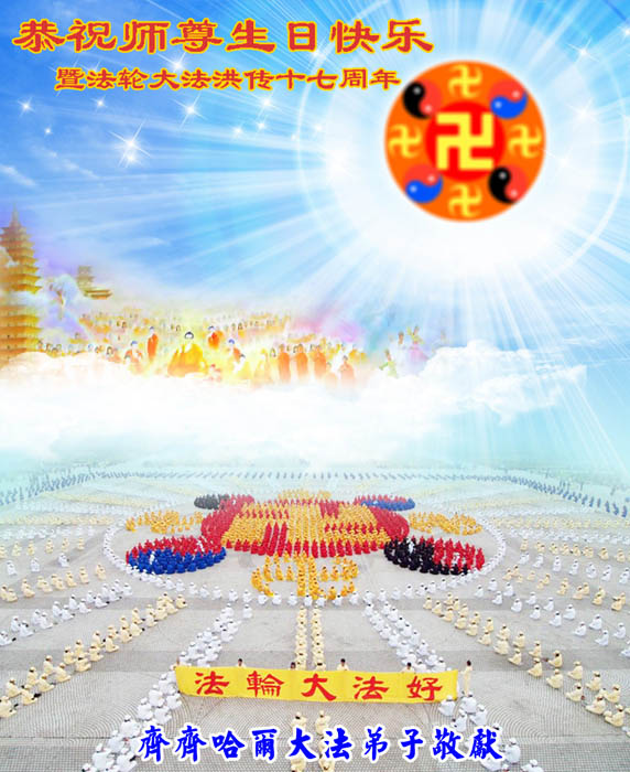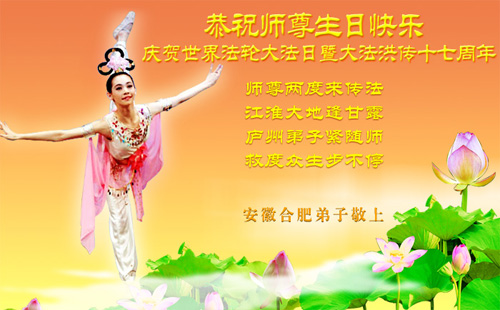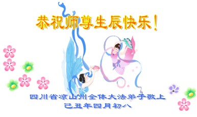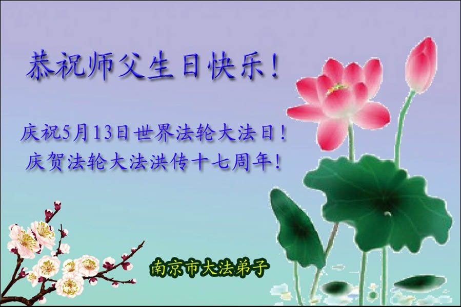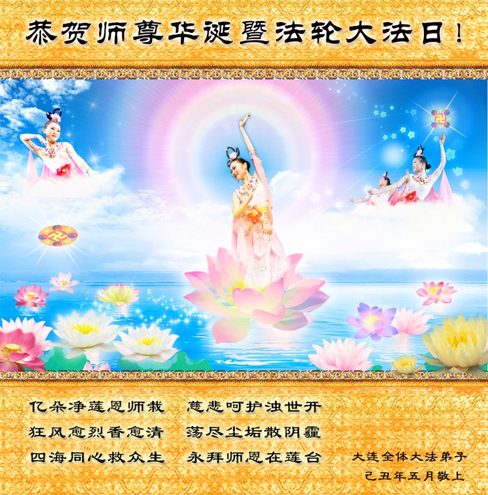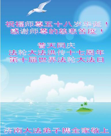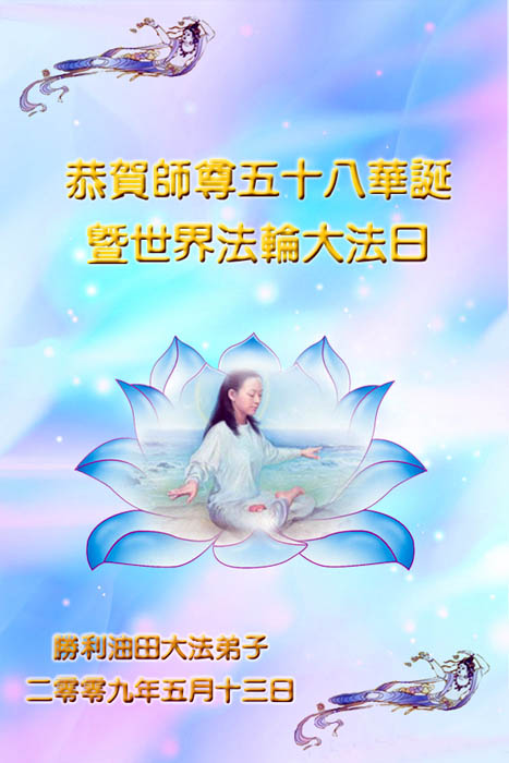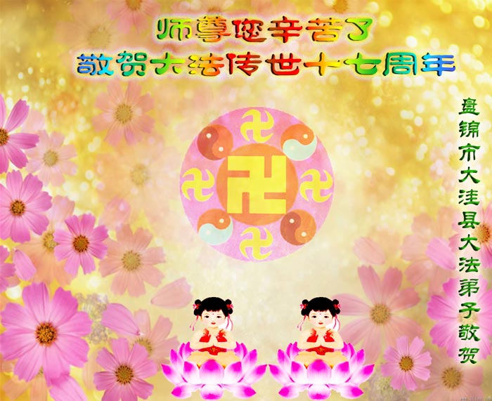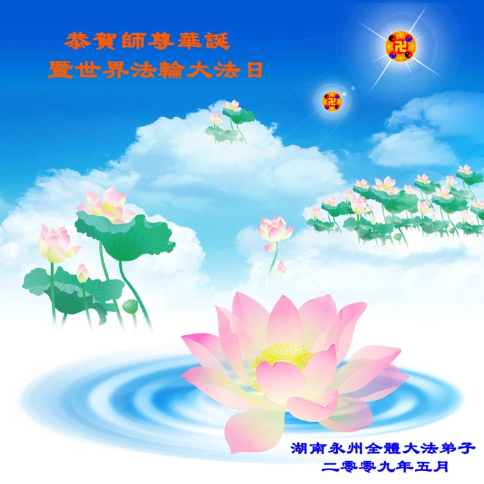 河南省某司法局的大法弟子恭贺世界法轮大法日!祝师父生日快乐!我们亲眼目睹了大法的神奇,受到师尊的呵护和慈悲救度。师父的恩泽,洪大的慈悲,用尽人类最美的语言都难以表达和赞美。在这人神共存,新旧宇宙交替的时刻,我们更加珍惜这稍纵即逝的时机,抓紧救度众生,灭尽最后的邪恶,圆满随师还!