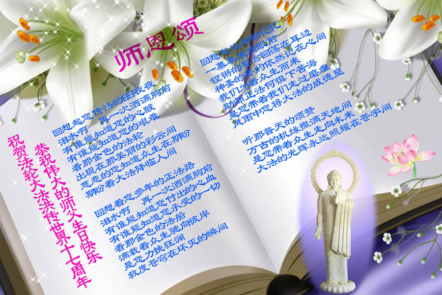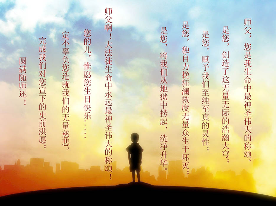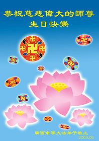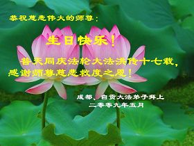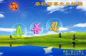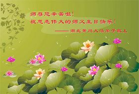 我是一个常人,对大师的“真、善、忍”最高佛法深有感触,也是对本人心灵深处一个很好净化。对此有很好的感触。望李大师大法发扬光大。祝您生日快乐!