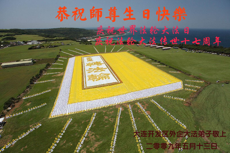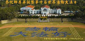 ![]() 台湾六千余名法轮功学员,五月九日早上在南台湾风光明媚的垦丁风景区埔顶大草原,将指导修炼的《转法轮》这本书,金光灿烂的排演出来。 |