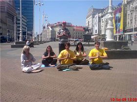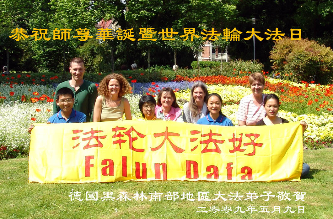 ![]() 德国西南部法轮功学员集体炼功迎接法轮大法日 |