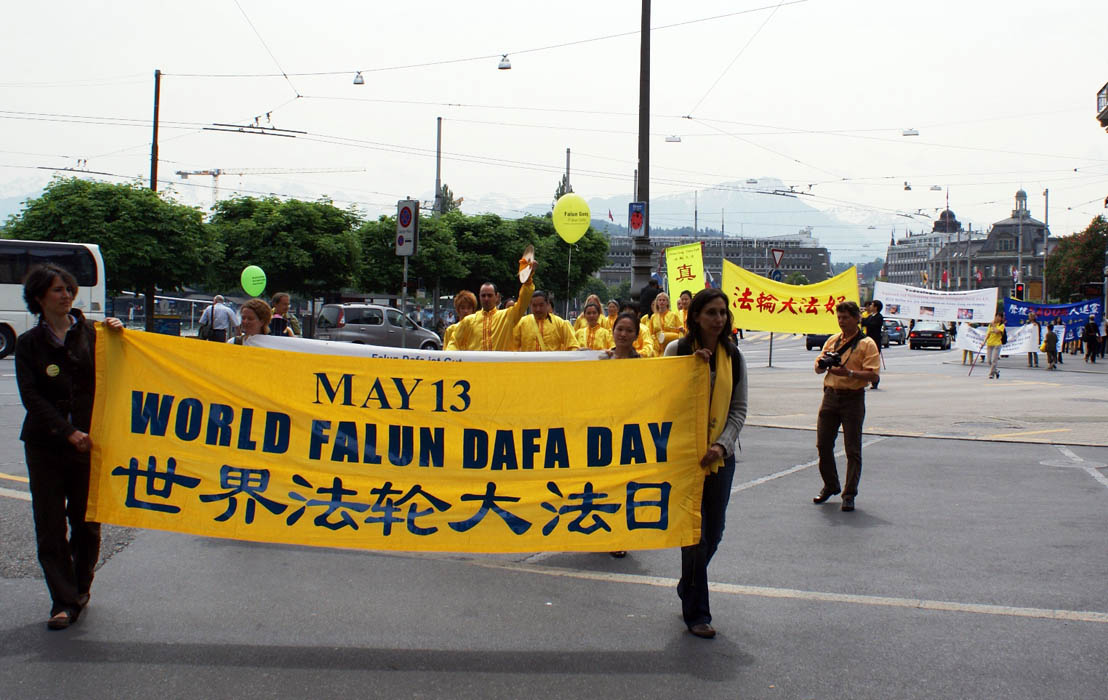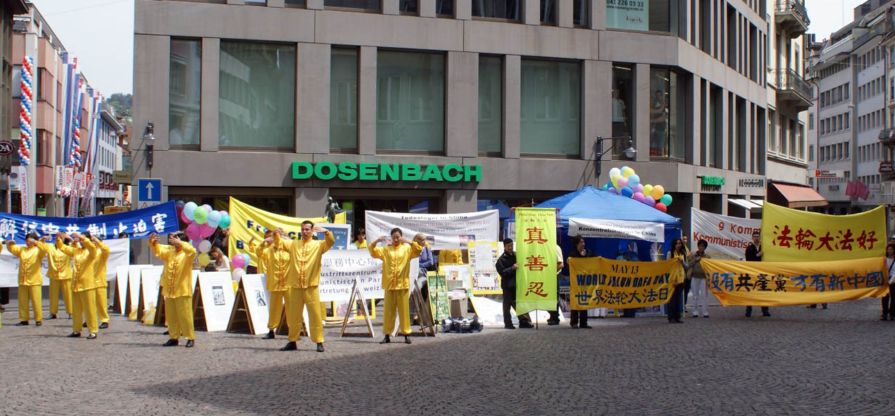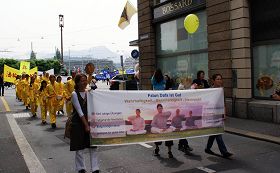 中午十二点,由“瑞士法轮功协会”和“全球退党服务中心瑞士分部”共同组织了在市中心的游行和集会。“全球退党服务中心瑞士分部”负责人潘女士在集会上发言指出,现在已经到了“解体中共,制止迫害”的时刻,她呼吁参加过中共组织的民众,抓紧时机,赶快“三退”(退出中共党、团、队),为自己争取一个美好的未来。