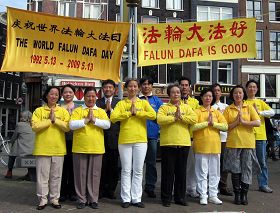 【明慧网二零零九年五月十四日】二零零九年五月十三日,荷兰法轮功学员在阿姆斯特丹唐人街庆祝世界法轮大法日。学员们演示功法,介绍大法在世界各地洪传的盛况,以及在中国大陆无辜遭到