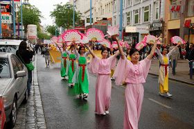 欢庆活动上午十一点整,庆祝活动在欧洲天国乐团演奏的气势雄伟的“法轮大法好“的音乐中拉开了序幕。