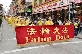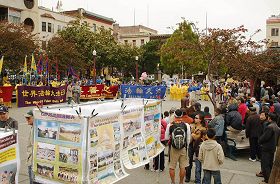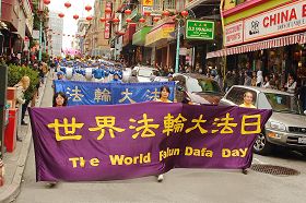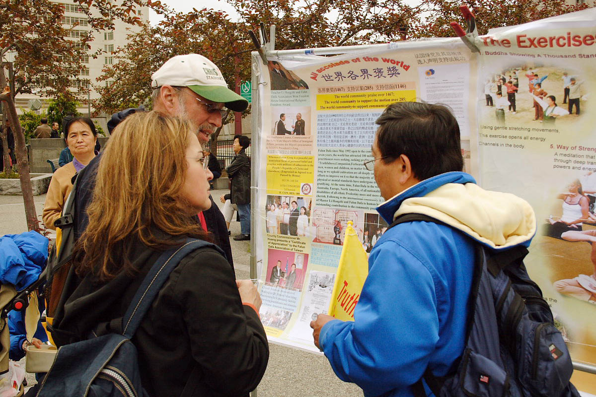 他表示,法轮功学员做好人,对社会和家庭有百利而无一害。他因炼法轮功被劳教。从劳教所出来后,他的妻子受中共的谎言欺骗,要他在大法和妻子之间做出选择。他说,他宁可失去生命,也不会放弃大法。他希望旧金山的民众能够了解法轮功,与法轮功学员一起制止中共的迫害。