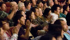 ![]() 神韵艺术团纯善纯美的演出引起了观众的深深共鸣,他们陶醉其中。 |
