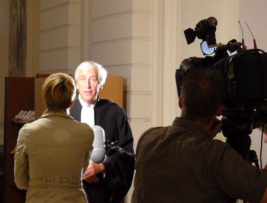 ![]() 比利时著名人权律师博杰先生在比利时高等法院里接受比利时国家电视台采访。 |