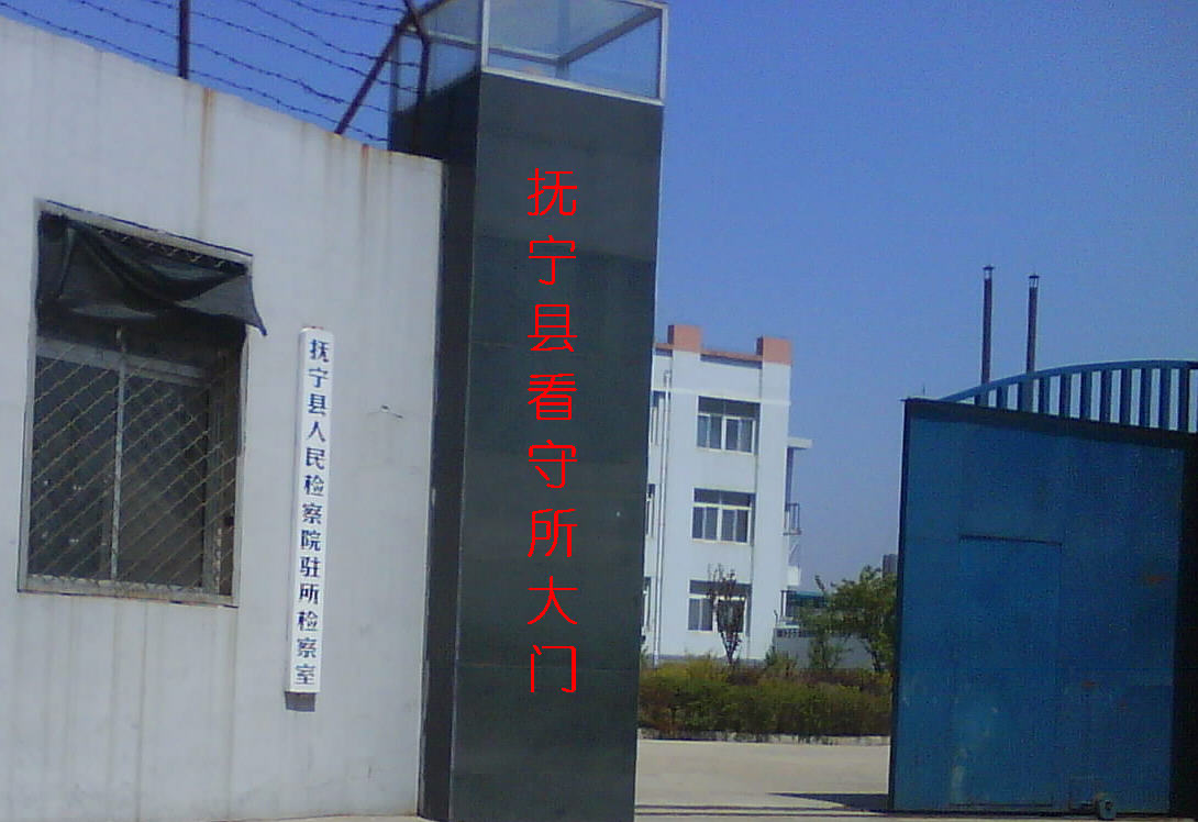 河北省秦皇岛抚宁县看守所地点在抚宁县杨家营村后面的山坡上,周围是当地农民开垦的土地;对外挂的牌子是“抚宁县检察院驻所检察室”。其高高的围墙上面布满了铁丝网,上面还有探照灯、瞭望所。大墙里面还有一道墙,比外面大墙高,墙上也有铁丝网,瞭望所就建在这个墙上。里面坐落着几排平房,是分区监室。仅在边上有一个小门。