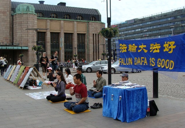 ![]() 法轮大法学员在芬兰首都赫尔辛基火车站前举办活动,传播真相 |