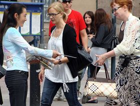 一个女孩在征签本前站了好一会儿,学员安娜(Anna)问她还有什么疑问。那女孩告诉安娜她犹豫的原因是她的男朋友是中国人,她不知道该不该在这里签名。安娜回答她,“你可以自己来做决定。”女孩最后签了名,她说她觉得结束这场迫害刻不容缓,还向学员索要了一些中文资料,准备带给她男朋友了解真相。