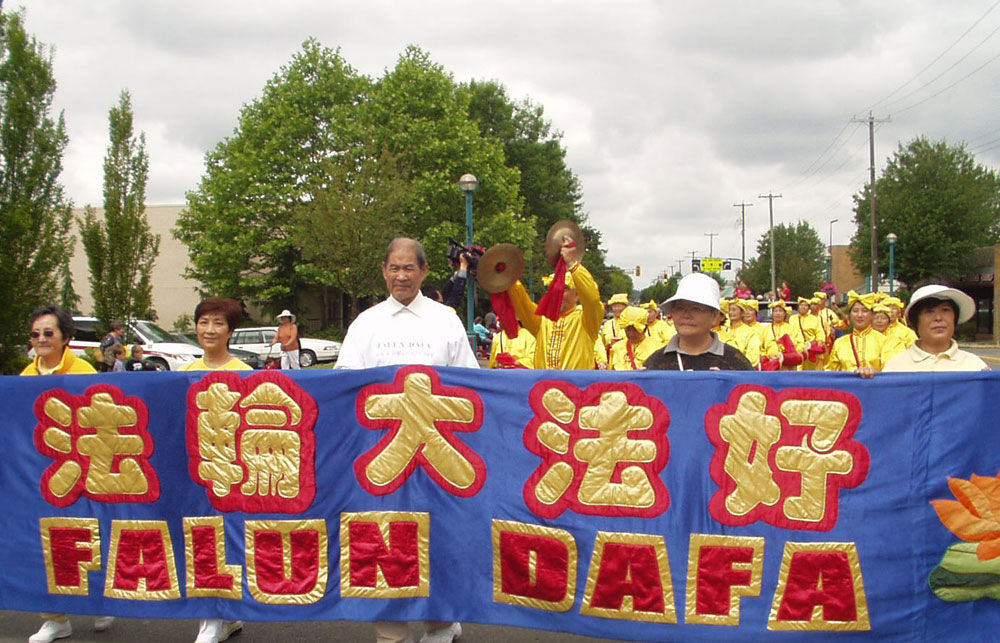参加游行的法轮功学员中,有不少六、七十岁的老人,他们过去都是一身病,炼功后身体好了,现在几乎是一次不落地参加各个城市、社区的游行。天国乐团、腰鼓队中都有他们矫健的身影。