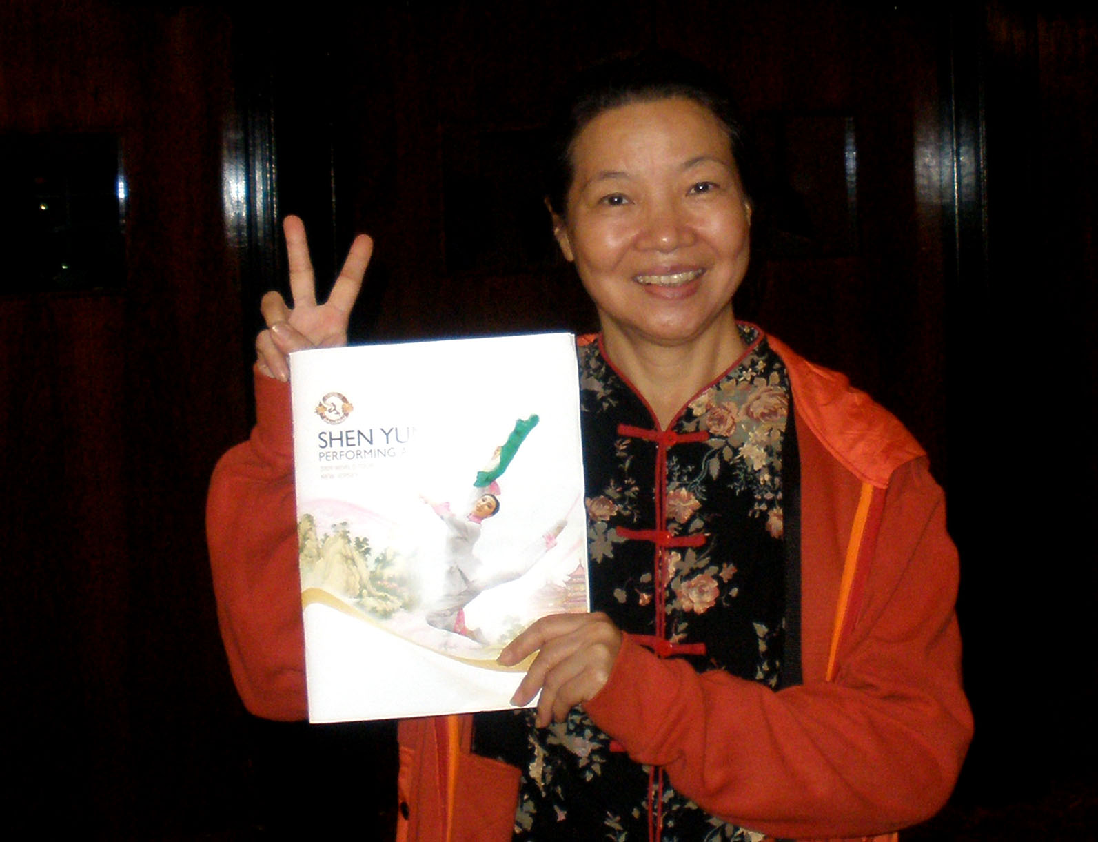 谈到节目,她滔滔不绝:“《雪山欢歌》节奏很强,‘孙悟空’的故事很熟悉。特别是开始大幕一拉开,哇,佛,菩萨都在舞台上,特别感动。这么几十年,从来没有哪个表演有这么多佛,菩萨出现。这是第一次看到,在神韵的表演里面看到,很感动。感到好象佛、菩萨就和我们在一起。”