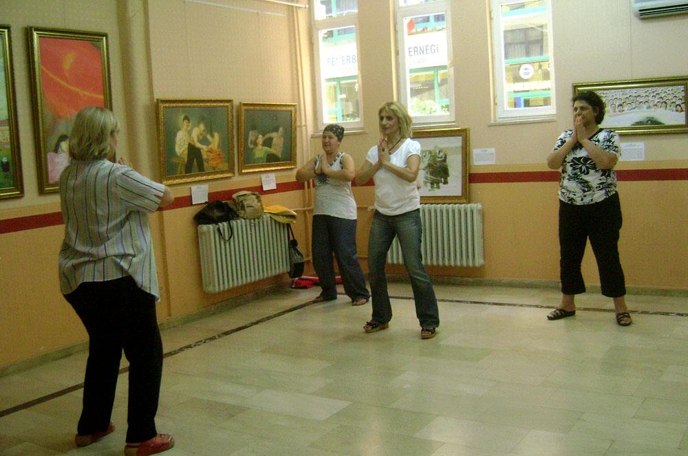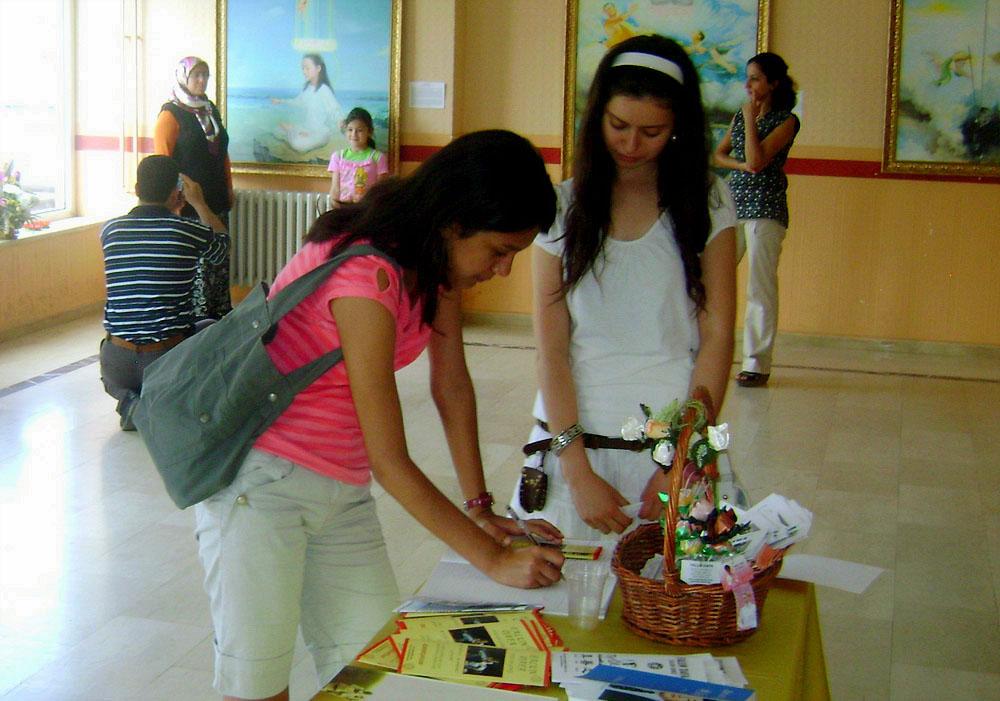 当地孤儿保护协会(Orphan Protection Association)的会长,国父思想协会(Ataturk Thought Association )的副会长和一名会员一行三人,多次来画展参观,最后,她们还学会了法轮功的五套功法。