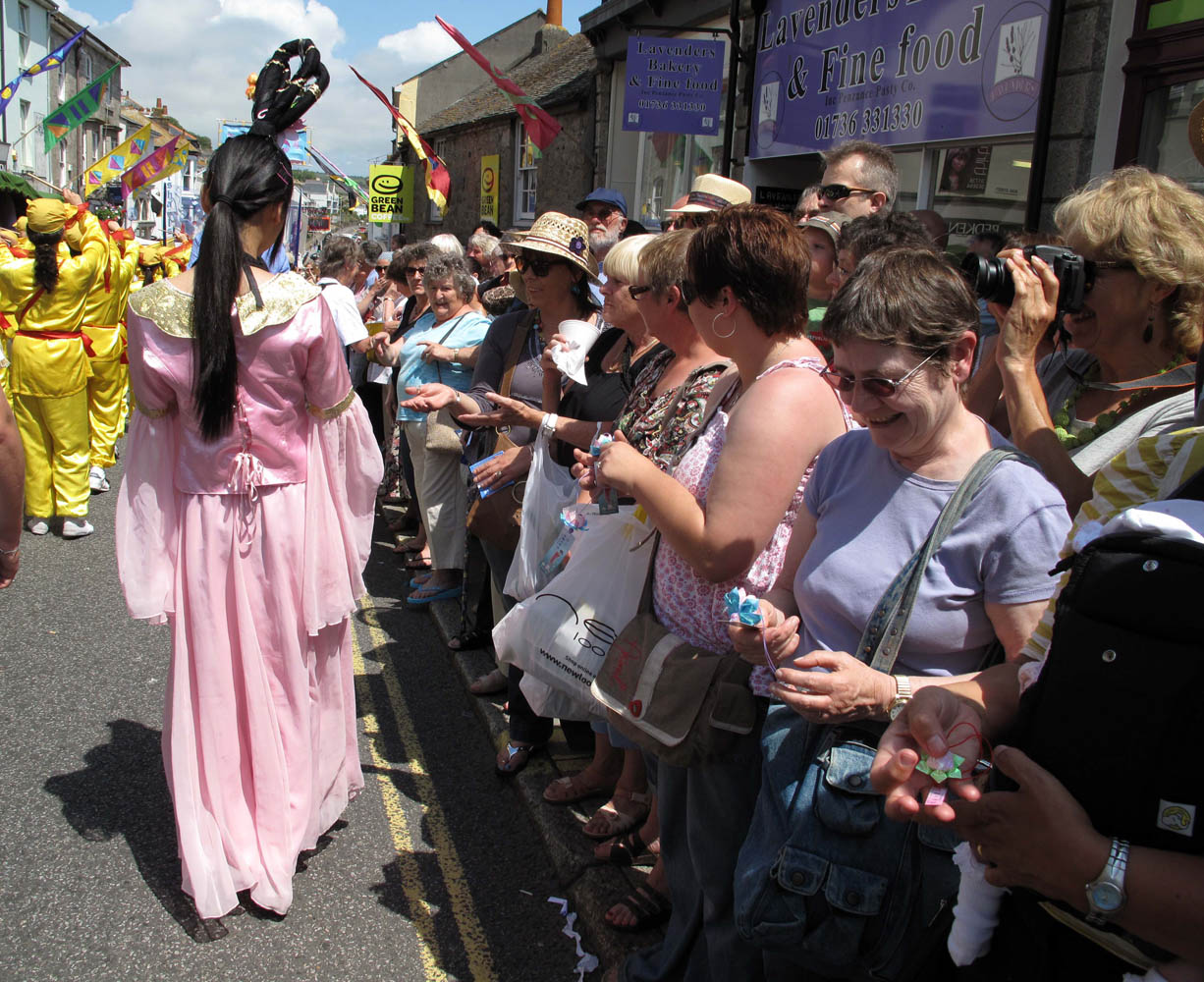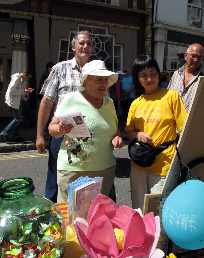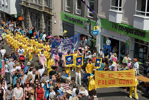 二十七日,法轮功学员在这里集体炼功、设展位介绍法轮功,并参加节日游行,给在这片“神圣的土地”上欢庆节日的人们感受法轮功、了解真相的机会。法轮功学员的参与吸引了当地媒体的注意,包括BBC电台康沃分台等多家媒体采访了法轮功学员,电台节目的播出使法轮大法的信息在英格兰西南部的康沃地区得以广泛传播。