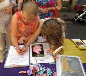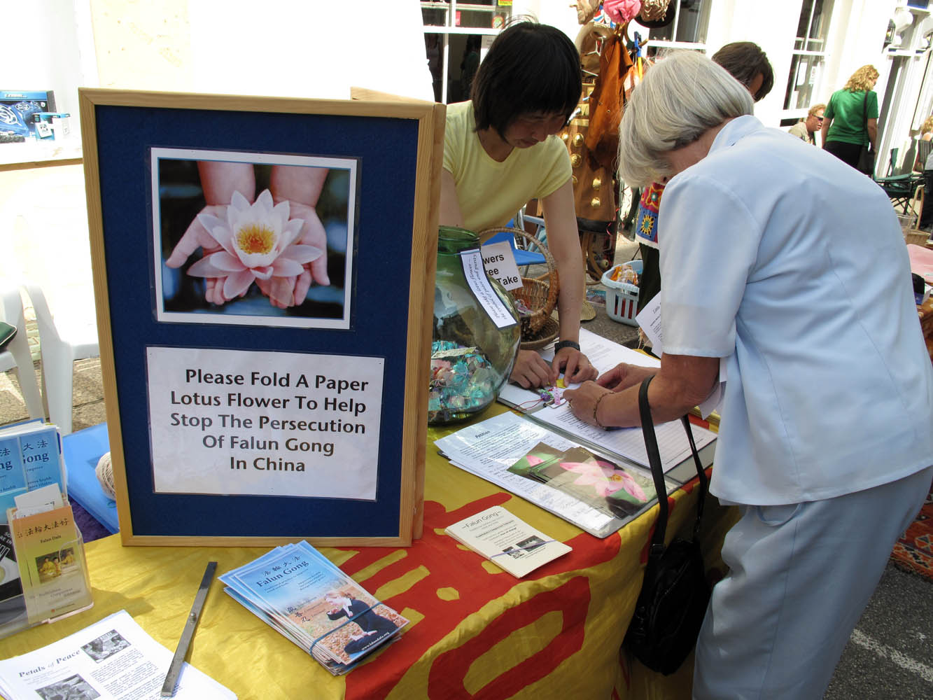 ![]() 人们学习折莲花,并关注法轮功在中国遭受的迫害 |