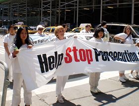 来自俄罗斯莫斯科七十岁的祖艾(Zoya)修炼七年了。她说自己一生都在寻找,碰到法轮大法后,她知道这就是她要找的。修炼后,“我的家庭更和睦了,和儿媳妇的关系变好了。”虽然已经七十岁了,祖艾仍然在工作。她曾想退休,把更多时间花在传播法轮功真相上,但她的老板不同意,要求她哪怕只工作半天,也要留在工作岗位上,因为祖艾是法轮功修炼者,做事认真负责,与人为善,老板和同事们都喜欢她,希望继续和她在一起。祖艾每天都拿着横幅去莫斯科中使馆前抗议中共迫害,刚开始,同事们都笑话她,了解了真相后,同事们都非常支持祖艾的正义之举。谈到参加纽约的大游行,祖艾说,“迫害十年了,我想和我的法轮功同修们一起,谴责中共的迫害和暴行。”