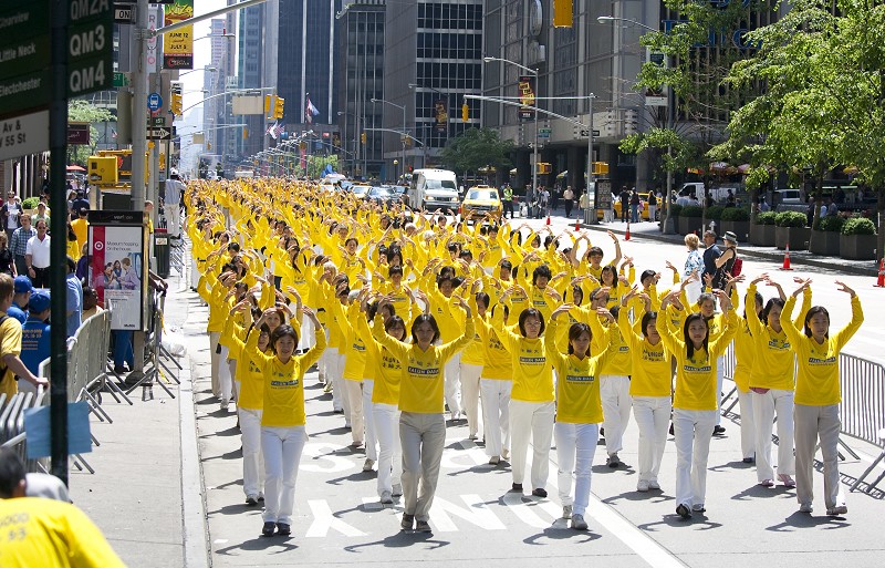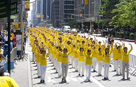 ![]() 六千法轮功学员在纽约曼哈顿举行盛大游行,展示法轮大法好。 |