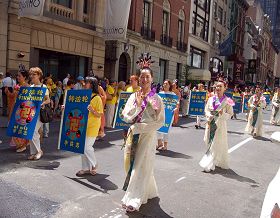 籍洪介绍说,一九九五年她身患胰头癌晚期,被医生判了死刑,在身体状况急剧下降的危险时刻,在朋友的介绍下,九六年在中国开始修炼法轮功,仅仅一、二个月的时间,身体状况急速回升,一年后为了配合法轮功祛病健身的调查而去医院体检,结果是一切指标完全恢复正常。籍洪说:“如果没有炼法轮功,我的生命早就没了。现在大陆法轮功学员还在被迫害,还有那么多人不知道法轮功的真相,我有责任把真相讲给人们,而纽约又是非常重要的地方,所以我每年都来这里参加盛大的游行。”