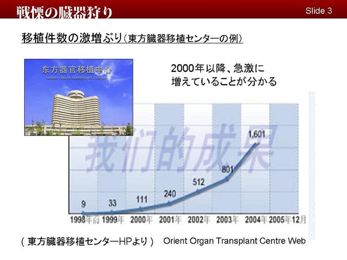 总部在天津的东方器官移植中心,其所谓的成果中,明显看到其移植数量的猛增。
