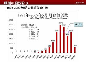 ![]() 1993年-2009年5月肝脏移植数据明显看出数量的增加。 |