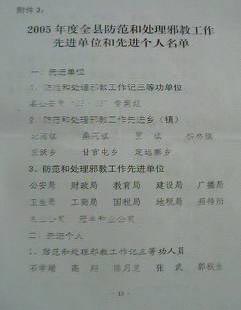 为此,邪党冠县委在二零零六年四月十八日专门下文件:冠发【2006】21号文件,“表彰”积极迫害法轮大法者,包括十三个单位、五十个人。
