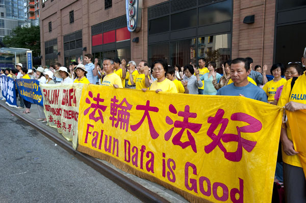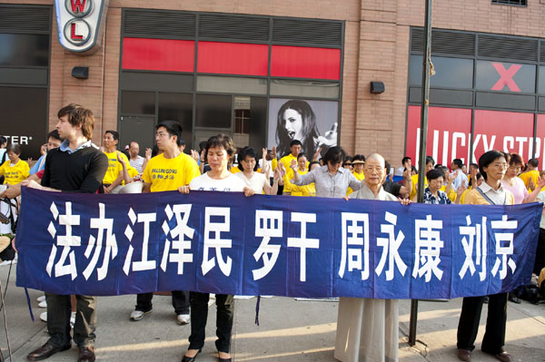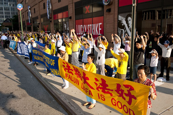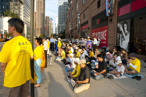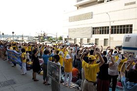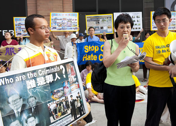 ![]() 法轮功学员在纽约中领馆前集会,呼吁制止迫害。 |